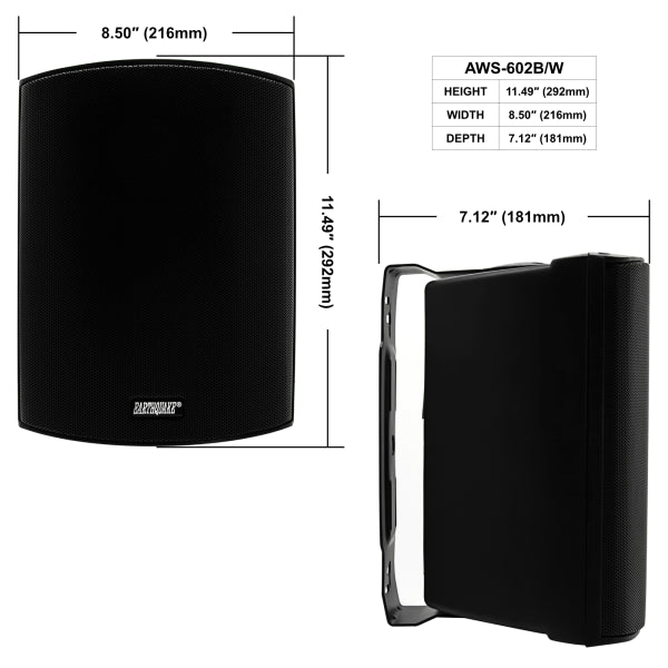 Built for durability, AWS series speakers come standard with proven materials like enamel-coated anti-rust aluminum grilles, molded high-temperature UV-treated enclosures, and gold-plated binding posts. The woofer includes a poly-mica cone with a high roll Butyl rubber surround that offers more extended excursion for better bass response and resists moisture degradation caused by humidity. Versatile mounting brackets make installation easier in most situations, and the speaker’s shape allows for simplified corner placement. The AWS line is an excellent choice in a large market of uncertain products.