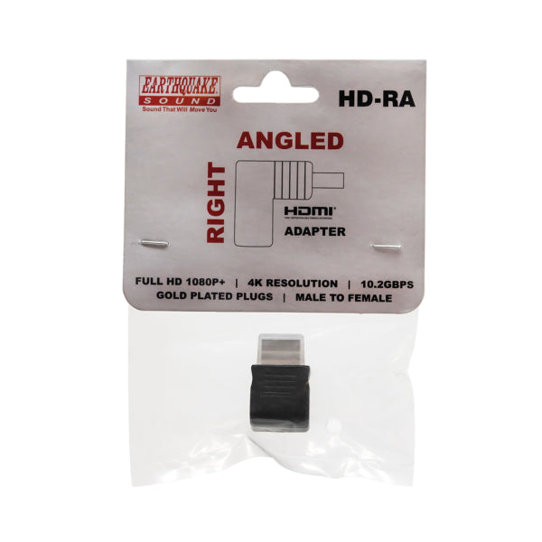 Use this Right-Angle Male to Female HDMI adapter to make it easier to connect your HDMI-enabled home entertainment gear. It's designed to work, especially with the Earthquake series of high-quality HD series of HDMI 1.4a cables, but it works with any HDMI cable with a male connector.