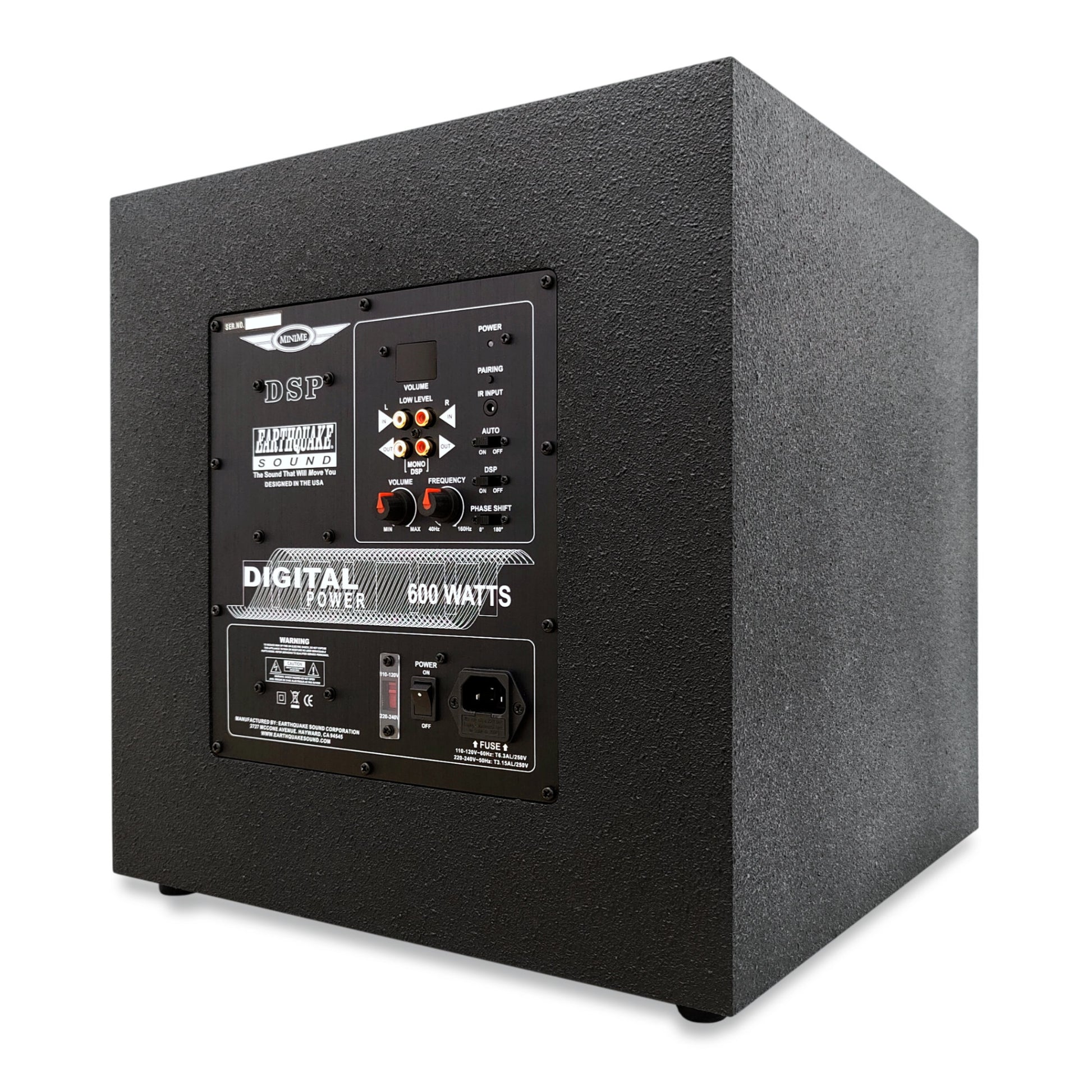 Expanding on Earthquake’s lineup of MiniMe powered subwoofers, the all new MiniMe DSP FF-12 utilizes advanced Class D circuitry with over 90% efficiency plus the added benefits of DSP control through mobile devices. Complicated and professional room tuning is now made possible right at your finger tips through a mobile app allowing the user to customize the MiniMe DSP FF-12 exactly to the room that it is placed in.