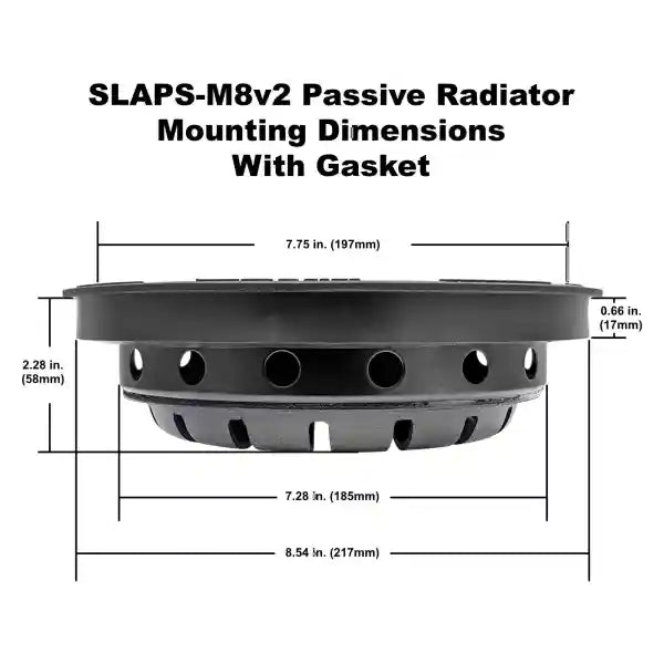 The Earthquake SLAPS-M8v2 is a tunable passive radiator that provides additional bass without additional amplifier power or enclosure volume. It is designed to perfectly complement all good-quality long-throw woofers on the market. SLAPS add up to +6dB of bass compared to regular sealed and ported enclosures. The benefit of being user-tunable is that they can be integrated into virtually any subwoofer/cabinet combination.