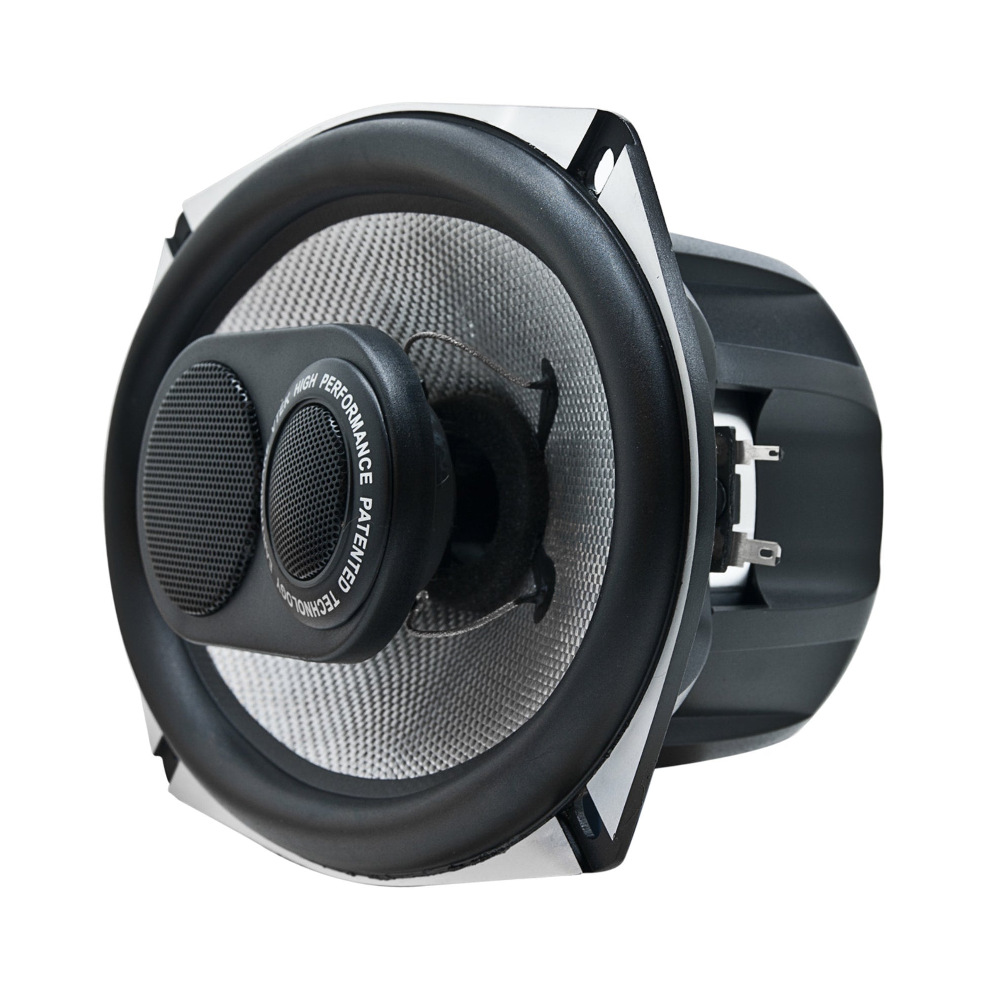 With several features that enhance sound quality, performance, and protection, the VTEK-693 coaxial speaker delivers the best OEM sound possible at the best price possible. Features such as glass fiber cone bodies for faster and more accurate dynamic responses, die-cast aluminum baskets for additional self-cooling, PistonMax™ drive technology for higher sound quality plus quantity, and 20mm swiveling silk dome neodymium tweeters result in the smoothest, highest, and most precise highs possible.